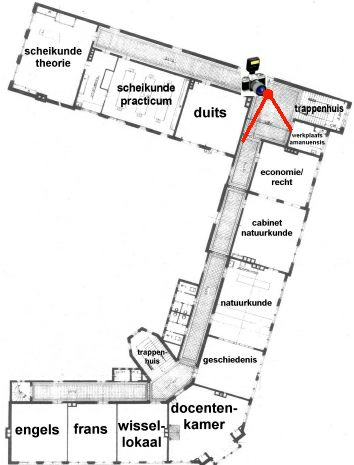 De trap, zoals deze te zien is op de foto, is pas geplaatst in 1992 bij de ombouw ' van school tot woning'.